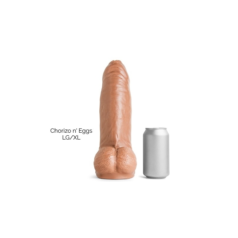 Dildo aus 75% weichem Silikon in Premium-Qualität. Der Gode CHORIZO N' EGGS LG/XL ist sowohl fest als auch flexibel und hat sehr realistische Details.